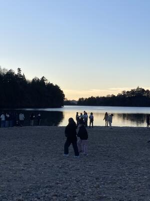 朝は、湯の湖の湖畔まで散策をしました。朝の気温は0℃と、川口よりも冷えていました。
