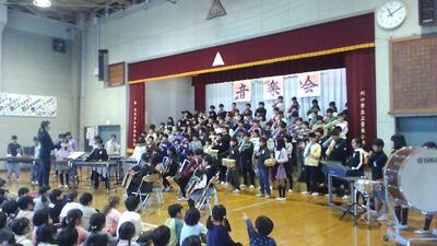 4年生の合奏は、たくさんの楽器の音が重なり合う上手な演奏でした。