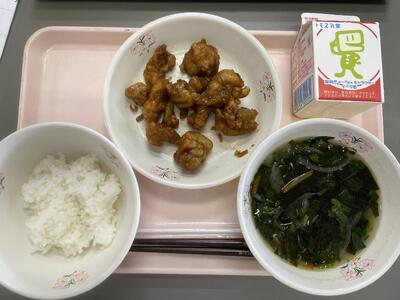 👹ごはん 👹牛乳 👹ユーリンチー 👹わかめスープ