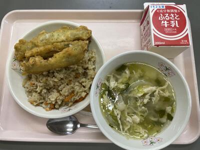🎃とりごぼうピラフ 🎃牛乳 🎃ししゃもフリッター 🎃たまごとレタスのスープ