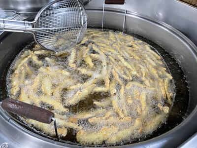 油に入れるとすごい泡がでてきて1分くらいで揚がります!