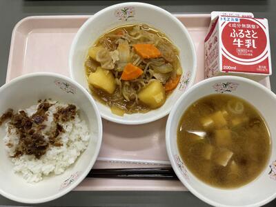 🎃ごはん 🎃エコふりかけ 🎃肉じゃが 🎃なめこ汁