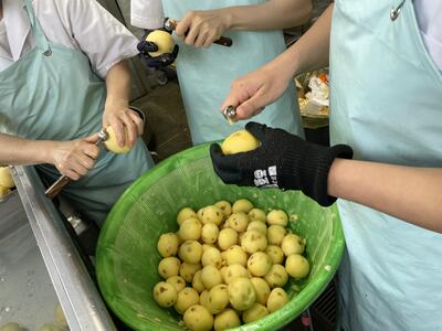それでも調味料を入れるとまたたくさん水分が出てくるので、水分をきりながら配缶してもらいました。