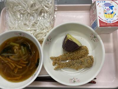 🎃地粉うどん 🎃カレーなんばん 🎃牛乳 🎃いわしフライ 🎃ふかしいも