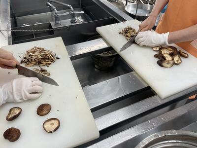 しいたけはいつも傘のみのものを入れて戻した後、1枚ずつ洗っています。