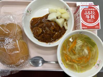 🎄はちみつパン 🎄牛乳 🎄ハンバーグデミグラスソース 🎄こふきいも 🎄野菜スープ