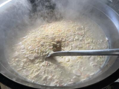 牛乳やオイスターソースを加えてコクのあるラーメンになるように工夫しました。