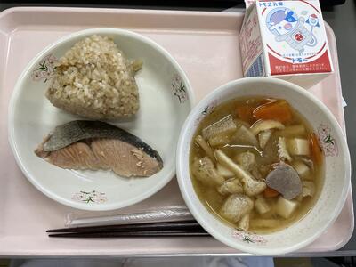 ⛄おにぎり(茶めし) ⛄牛乳 ⛄さけの塩焼き ⛄豚汁
