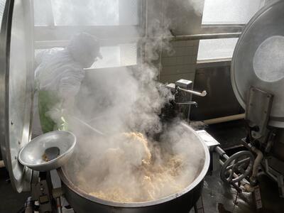 1年に1度のおにぎりの日…!事前に1クラス分の重さを計算しておき、朝早くからお米を炊いて…