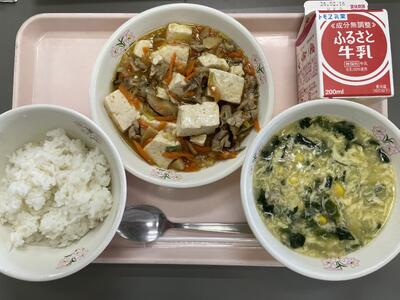 👹ごはん 👹牛乳 👹四川どうふ 👹中華風コーンスープ
