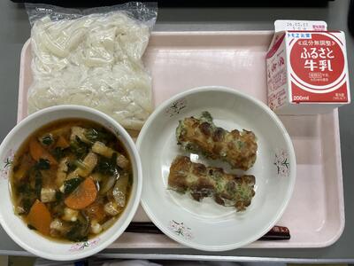 🎎地粉うどん(平打ち) 🎎ほうとう 🎎牛乳 🎎ちくわの磯辺揚げ
