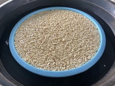 ちらしずしに使う高野豆腐はしばらく水につけて戻します。