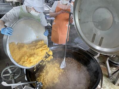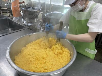 さらにここにほぐしたスクランブルエッグも入れるのでたくさん配缶することができました☺