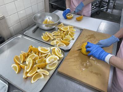 河内ばんかんは給食室で8等分にしました。さわやかな香りでした♡