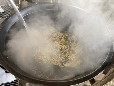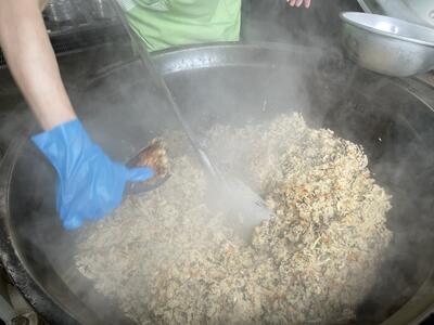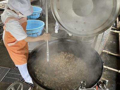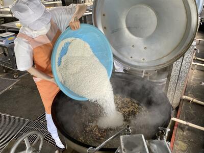 味付きごはんのときは給食室で炊いています。