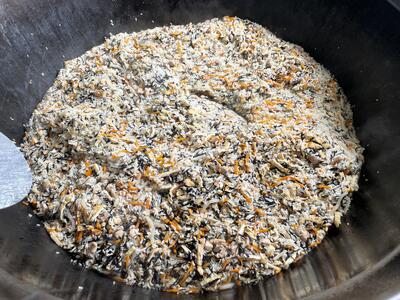 今日は学校で炊いた「ひじきごはん」です。