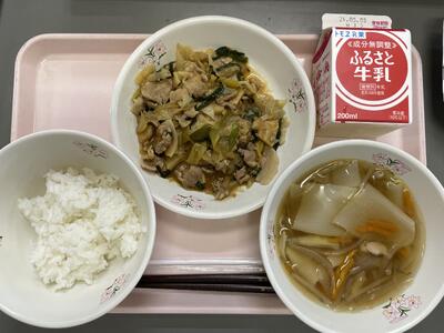 🌸ごはん 🌸牛乳 🌸ホイコーロー 🌸わんたんスープ