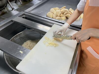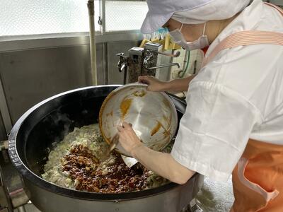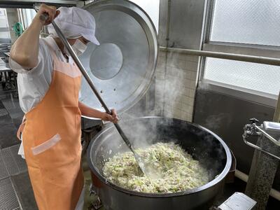 給食ではサッと加熱するということはできないので(中心温度を3か所で測り、それぞれ90度以上まで加熱)、
