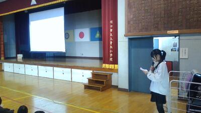 児童集会「保健委員会の発表」より 投稿: 上青木小学校 (16:00) 1月の児童集会は保健委員会が担当しました。正しい歯磨きのしかたについて、磨き方のポイントをスライドを使用して 見やすくていねいに伝えました。磨き残しなく、正しい歯磨きをしっかり行うことで、むし歯や歯周病を予防する大切さを 発表しました。 -